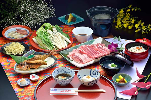 鹿児島の代表的な「黒豚」をメインとした食事処です。自慢の料理と心尽くしのおもてなしで、お待ちしております。知覧特攻平和会館近く、大型駐車場完備しております。