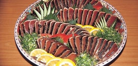 - 高知の郷土料理と言えば"皿鉢料理"。人が集まるテーブルには欠かせない存在です。刺身やお寿司、揚げ物、煮物、果物・・・などなど、旬の美味しいものが大皿に盛られ、お酒を飲む人も飲まない人も楽しめる造りになっています。