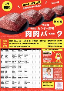 - 人気店、市内外から全31店舗以上「肉肉だらけの肉祭り 肉肉パーク つくばセンター広場」みんな大好き、お肉料理が大集合! 各店自慢のお肉料理を提供。中には肉肉パーク限定メニューも。