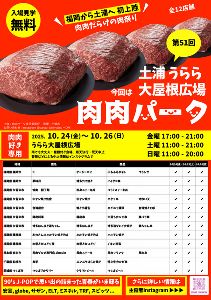 - 人気店、市外県外から全12店舗が集まる「肉肉だらけの肉祭り 肉肉パーク」が、うらら大屋根広場で初開催。みんな大好き、お肉料理が大集合!各店が自慢のお肉料理を提供。中には肉肉パーク限定メニューも。