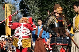 - 古式ゆかしい衣装で「福は内、鬼は外」