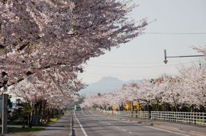 (湯の川温泉足湯「湯巡り舞台」周辺から鮫川沿い道路)