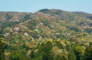 - 山の斜面いっぱいに咲く桜
