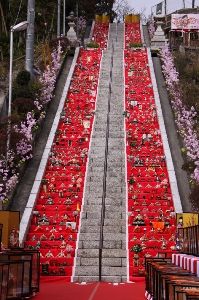 - 百段階段に並ぶ1000体の雛人形!