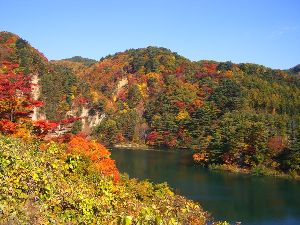 - 家族レジャーにぴったり、田瀬湖の紅葉
