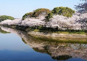 - 水鏡に映える逆さ桜も楽しめる