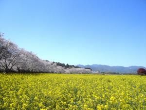 - 2千本の桜と30万本の菜の花が咲き誇る