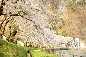 - 千曲川に添って続く約700本の桜並木