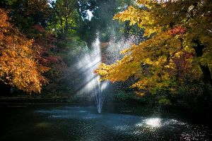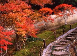 - 回遊式の庭園を彩る鮮やかな紅葉