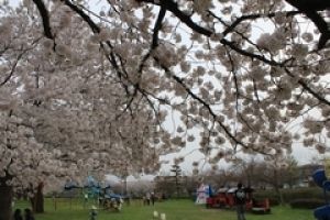- 約300本の桜が咲き誇る越路河川公園周辺