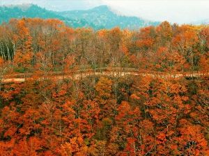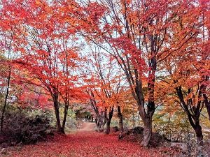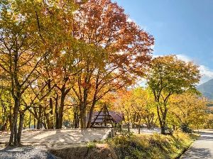 - 渓流沿いの木々が美しく色づく紅葉の名所