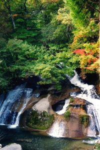 - 日本の滝百選の一つ、名瀑に寄り添う紅葉