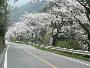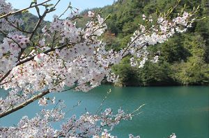 - 黒髪山の荒々しい姿と桜舞う様子が美しい