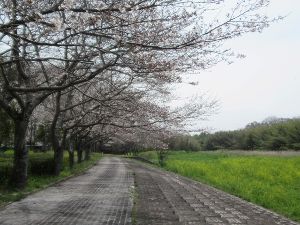- 野洲川沿いに桜並木が続く