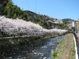 - 大津谷川の川沿いを彩る桜の見事な春景色
