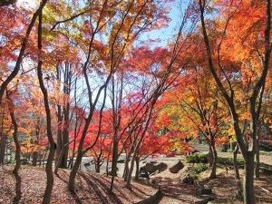 - 紅に染まる府中市郷土の森博物館の「紅葉」