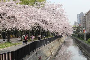 - 都会の水郷を桜が彩る