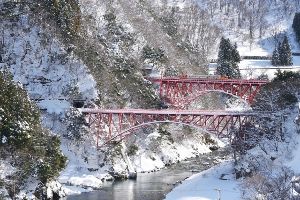 - トロッコ電車に乗って白銀の黒部峡谷を鑑賞