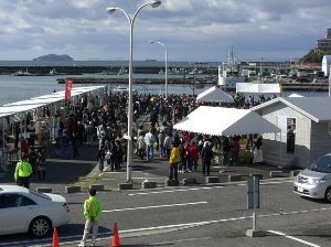 - 新鮮な魚・野菜・加工品等が並ぶ軽トラ市