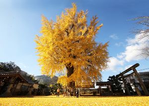 - 「銀杏の大樹」が参拝者を迎えてくれる