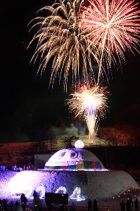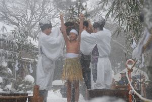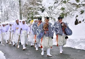 - 雪の中で演じられる雪中芝居「黒森歌舞伎」
