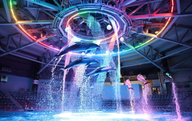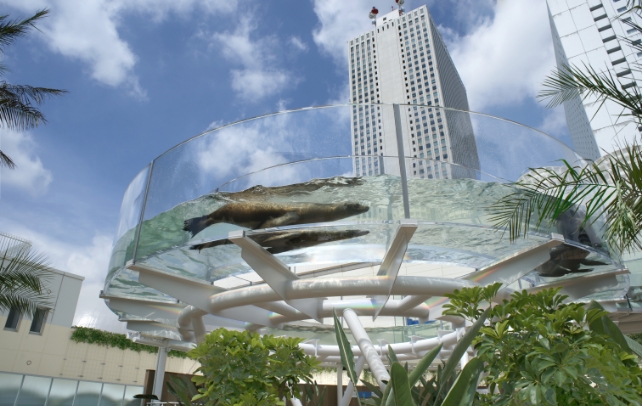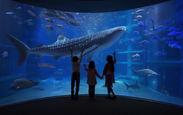 - 海の王者シャチ、イルカ、アシカ、ベルーガの4種類の動物パフォーマンスと環境一体型展示施設で、800種11,000点を越える川や海の生き物を飼育展示した水族館です。