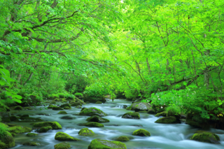 - 白神山地は青森県から秋田県にまたがる標高1000〜1200mの山岳地帯で、総面積は約13万ha。このうちの原生的なブナ林16971haの区域が1993年に世界遺産として登録されました。世界的にも希少なブナ林で、約500種の植物とそれに支えられる豊かな生態系の命を育んでいます。 国の天然記念物のクマゲラも生息。 白神山地の地形は、まさしく深山幽谷。ブナ林は、水源涵養機能や地表侵食防止機能なども高い「緑のダム」。ここから流れ出す川も多く、落差の大きな滝が、手つかずの自然美とともに見事な景観を生み出します。 暗門川の源、三つの「暗門の滝」をめぐるウォーキングコースは、険しい岩壁や生い茂るブナの老木に白神山地の片鱗を見ることができます。