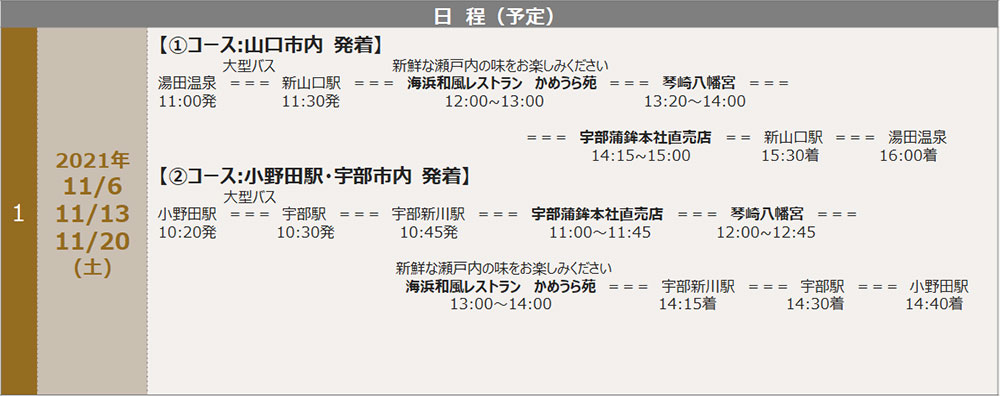②コース 乗車場所:小野田駅/宇部駅/宇部新川駅