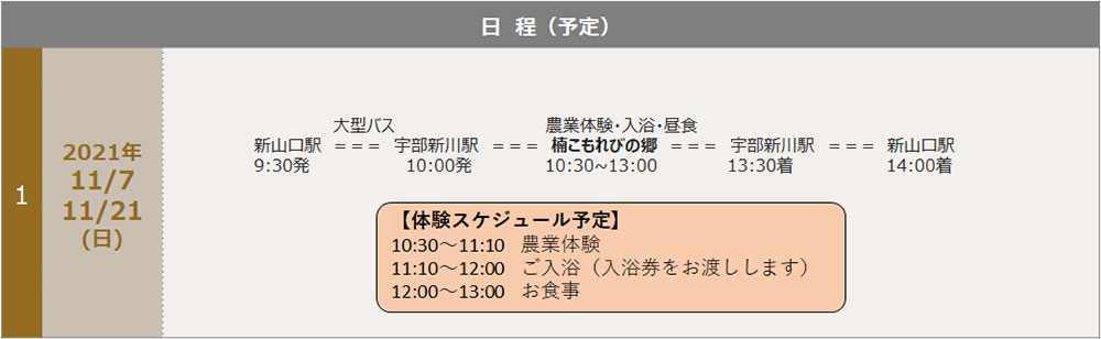 貸切バス代金・昼食・体験料・入浴料・添乗員経費