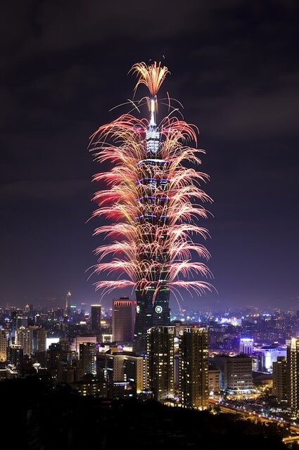 101階建ての超高層ビル「台北101」で毎年12月31日に開催されるカウントダウン花火は必見。