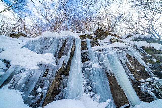 厳しい寒さが訪れると、渓流沿いの滝が凍りつき、迫力ある氷瀑や美しい氷の造形が出現。白銀の森とガラス細工のように輝いた氷が描く水墨画のような景色は、神秘的な美しさです♡
