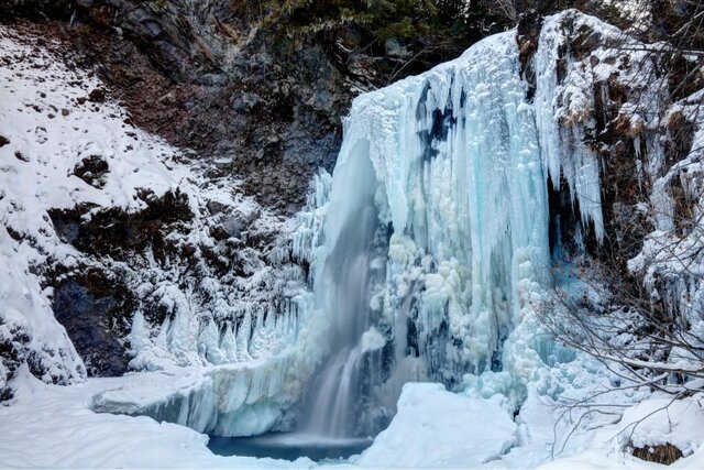 氷瀑は、厳しい寒さが生み出す一瞬の芸術。滝が凍りつく静寂の空間に身を置けば、心が透き通っていくのを感じられること間違いなしです♡