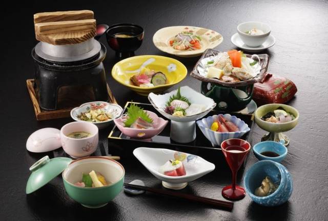 夕食の郷土懐石料理は、日本海であがった新鮮な旬の魚貝類をふんだんに使い、女性に人気になっています。
