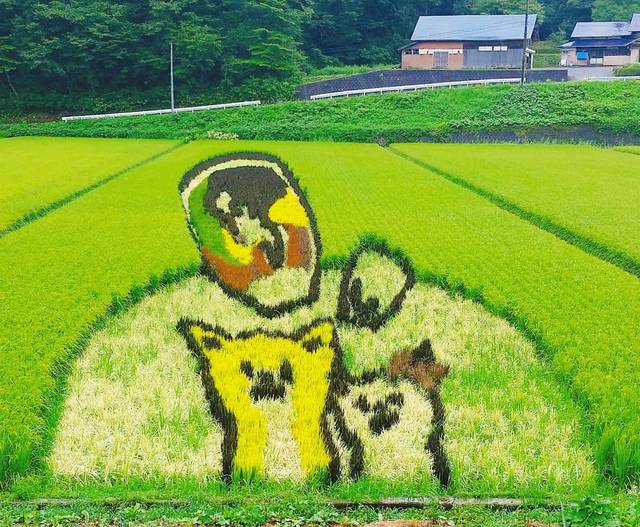 最近いろいろなところで見られるようになった田んぼアートですが、秋田内陸縦貫鉄道沿線の各地に田んぼアートが点在し、8月頃に見頃を迎えます。