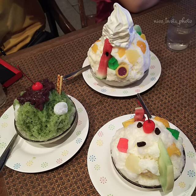 ふわふわのかき氷に練乳をかけ、フルーツをたっぷり添えたスイーツですが、各店舗がその店オリジナルのしろくまを提供しています。