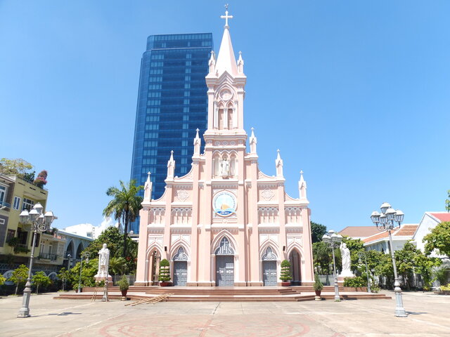 1923年にフランス人宣教師によって建てられた教会で、可愛いピンク色の外壁が写真スポットとして人気です。