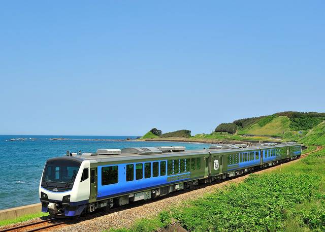 青森県川部駅と秋田県東能代駅の43駅を結ぶ五能線「リゾートしらかみ」。世界自然遺産の白神山地や、日本海の雄大な景色を堪能できます。