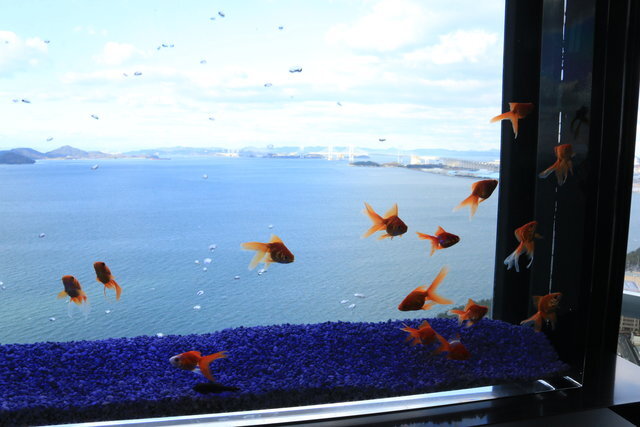 展望台の最上階に天空のアクアリウム「ソラキン」があり、アクアリウムの「UWS ENTERTAINMENT」とミラーボールの「ミラーボーラーズ」がコラボレーションし、金魚・鏡・ミラーボールで演出された万華鏡をイメージした異空間となっています。