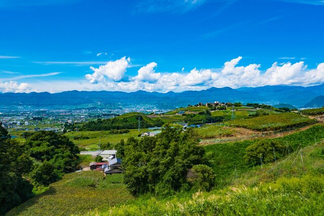 富士山や甲府盆地を一望できる、丘の上のワイナリー。登ると美しい景色を見られることから「登美の丘」と名付けられました。1909年の開園から100年以上の歴史を持つ伝統的なワインの産地であり、日本ワイナリーアワードでは五つ星を5年連続で受賞しています。