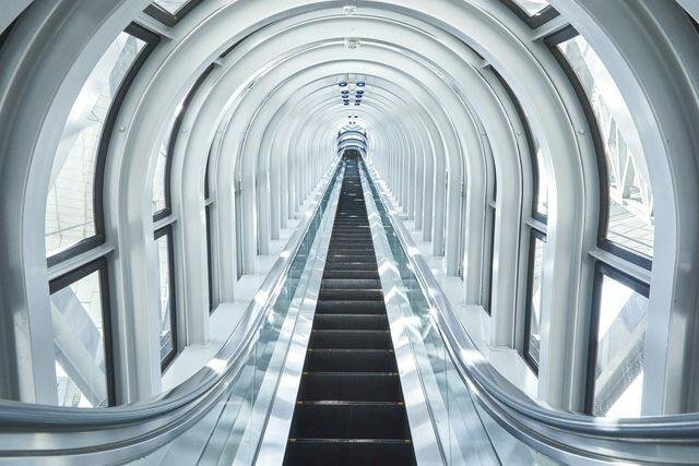 梅田スカイビルの特徴的なデザインとして、39階から40階への移動に利用できるシースルーエスカレーターがあります。