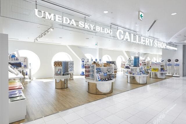 39F無料エリアの「UMEDA SKYBLDG GALLERY SHOP」では、オリジナルグッズを中心に、常時1,000種類を超えるお土産商品を取り扱っています。
