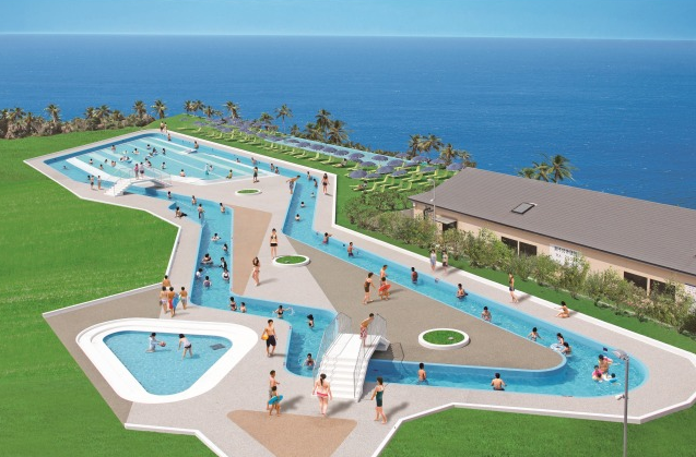 目の前に海が広がる恵まれたロケーションに加え、大型のプール施設が2つ、屋内の流れるプールもあるから、雨の日も安心です。迫力の全長70mのウォータースライダーも!