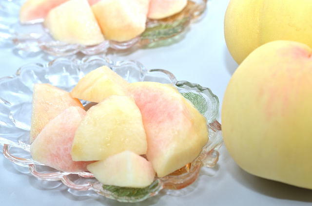 岡山県を代表する果物といえば桃、特に「白桃」です。岡山の白桃は芳醇な香りと繊細で上質な甘味があり、他にはない「白い肌」がこだわりです。