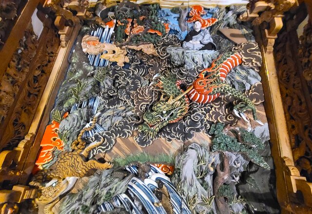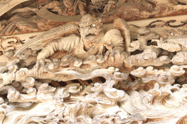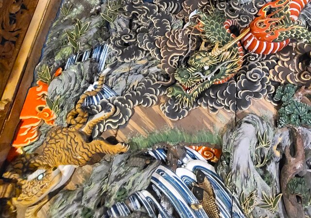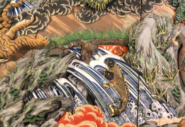 龍や虎だけでなく、亀や鯉、猿やスズメなどの小動物も作品のいたるところに彫り込まれているので、探しながら鑑賞するのもこの作品の楽しみ方の一つです。
