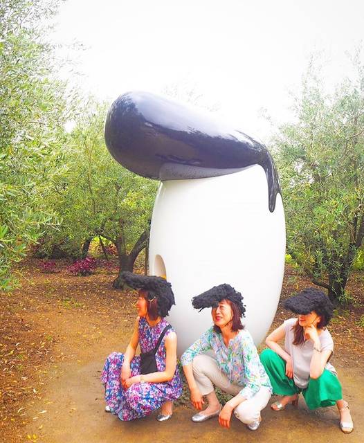 このオリーブ園のおじさんに言われるがままリーゼントをかぶせられ、そしてこのポーズ。笑