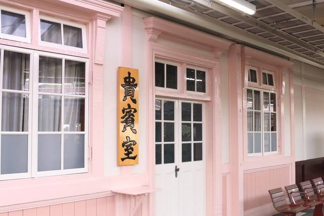 実はホームからは貴賓室という看板も見えますが、普段は公開されていません。