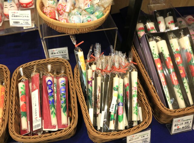 「会津絵ろうそく」は、菊や牡丹・梅などの艶やかな絵柄が特徴で、神仏用だけでなく結婚式の演出にも使われます。