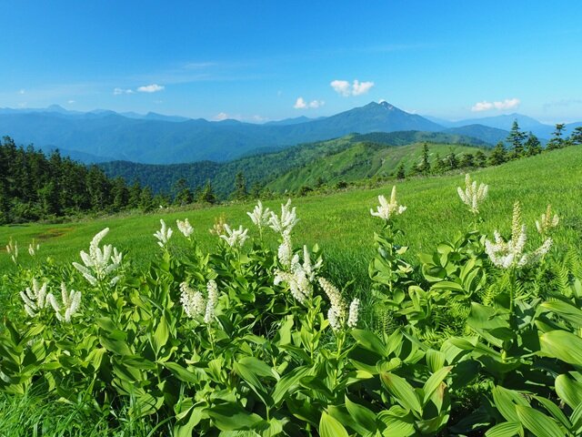 6月の福島は、新緑と残雪が織りなす美しい季節。磐梯山・吾妻連峰・会津駒ヶ岳などでは、ミヤマキンポウゲ、コマクサ、ニッコウキスゲ、ショウジョウバカマといった高山植物が咲き誇ります。