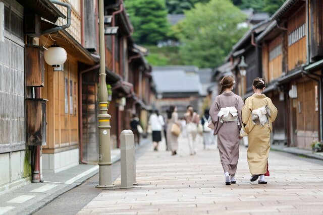 歩くだけでフォトジェニックな雰囲気を味わえるので、女子ゴコロをくすぐること間違いなし♡さらに楽しむなら、加賀友禅の着物レンタルがおすすめです。伝統的な着物を身につけて散策すると、より一層気分が高まりますよ♪
