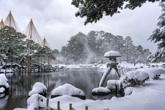特に冬の季節は人気が高く、珍しい「雪吊り」を見ることができます。ベストシーズンである2月はあたり一面が白銀となり、幻想的な世界に♡夜にはライトアップが行われ、さらに美しさを増します。